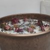 Bakır renkli metal kase içerisinde gül kokulu mum. 700-800 gr. ağırlığındadır. Güller ve üzerlik ile süslenmiş. 2 adet bambu fitile sahip %100 soya mum.